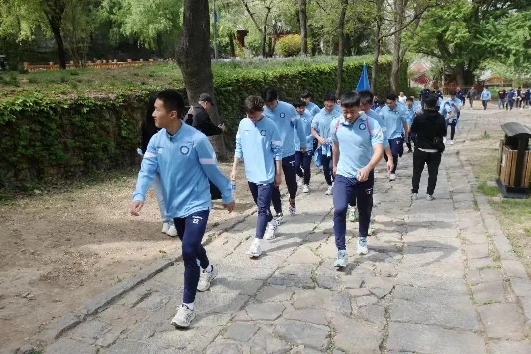 出征儀式后,濟(jì)南興洲足球俱樂部在靈巖寺景區(qū)內(nèi)進(jìn)行了登山活動(dòng)。