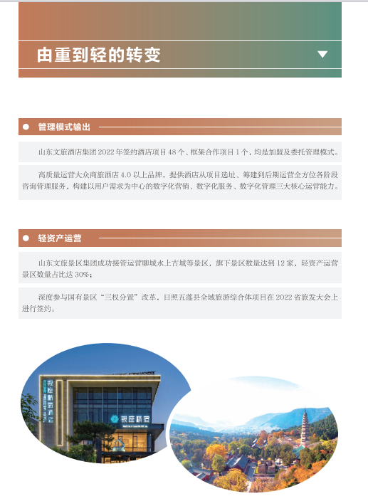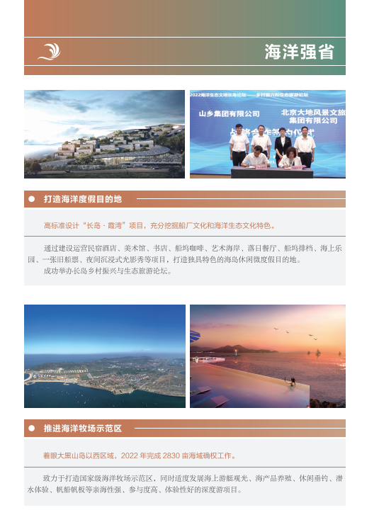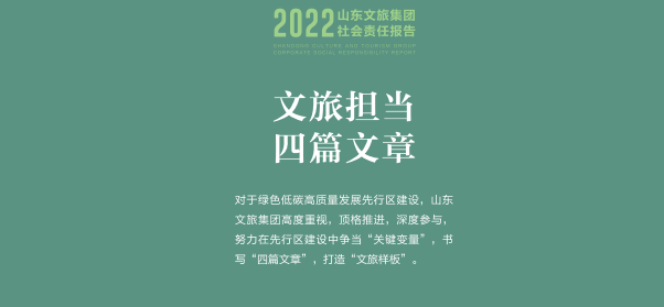 近年來,山東文旅集團(tuán)秉承“服務(wù)山東大局、服務(wù)人民大眾”的國企使命,積極履行社會責(zé)任。認(rèn)真學(xué)習(xí)貫徹黨的二十大精神,以黨建為引領(lǐng),持續(xù)提升企業(yè)管理水平;高度重視綠色低碳高質(zhì)量發(fā)展,努力在鄉(xiāng)村振興、海洋強(qiáng)省、黃河戰(zhàn)略、山東手造“四篇文章”等方面發(fā)揮優(yōu)勢、有所作為,打造泰山九女峰鄉(xiāng)村振興示范區(qū)等系列樣板工程;克服疫情沖擊,謀求差異化發(fā)展,推動由重到輕、由塊到鏈、由競到合“三個轉(zhuǎn)變”;組織豐富多彩文化活動,開展典型選樹,關(guān)愛員工發(fā)展。