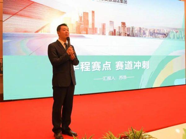 7月21日,山東文旅酒店集團(tuán)“持續(xù)加力 沖刺業(yè)績(jī)”2023年半年工作會(huì)議在菏澤召開(kāi),會(huì)議傳達(dá)學(xué)習(xí)山東文旅集團(tuán)黨委書(shū)記、董事長(zhǎng)丁藝在山東文旅集團(tuán)半年工作會(huì)議上的講話精神,總結(jié)2023上半年工作成績(jī),分析研判當(dāng)前經(jīng)濟(jì)形勢(shì),安排部署下半年重點(diǎn)工作。山東文旅集團(tuán)首席商務(wù)官,山東文旅酒店集團(tuán)黨委書(shū)記、董事長(zhǎng)李浩主持會(huì)議并講話。