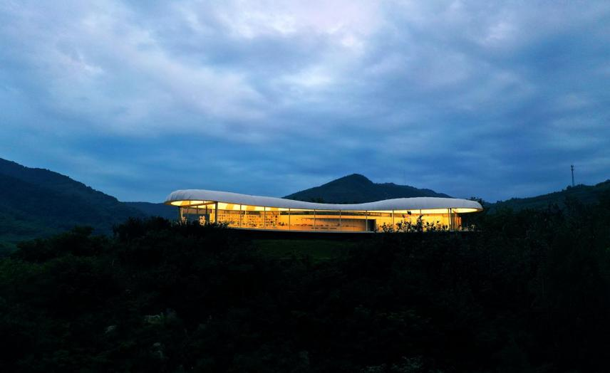 作為九女峰沉浸式景區(qū)的重要標(biāo)志之一,九女峰書房毗鄰神龍大峽谷,東望五岳之首的泰山,獨特的建筑線條與連綿起伏的山脈和潺潺流淌的山泉相互呼應(yīng),猶如“一朵懸停于山間的飄浮云絮”,與泰山云海的波瀾壯闊形成生動回應(yīng),是全國知名的網(wǎng)紅打卡地、中國十大最美書房。截至目前,已接待游客22.3萬人次。
