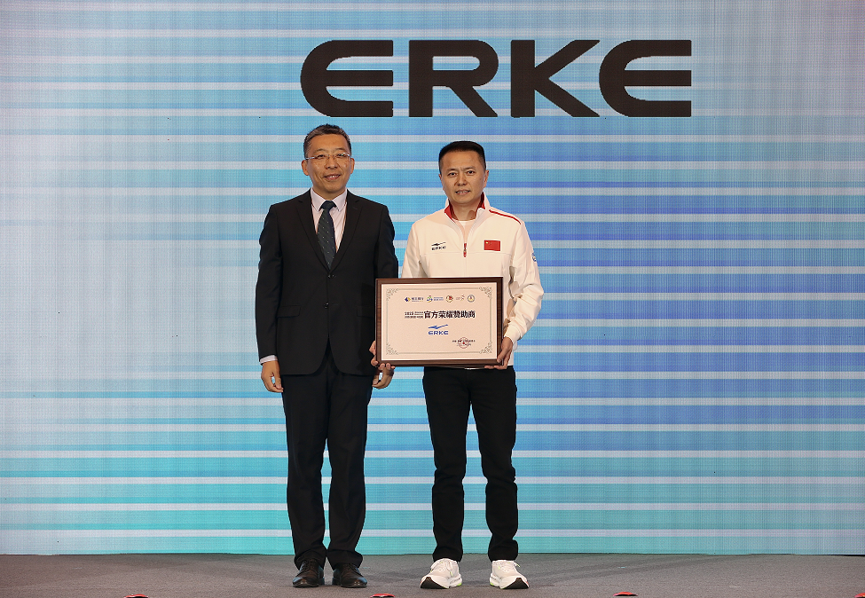 濟南市體育局黨組成員、副局長趙晨光為賽事榮耀贊助商鴻星爾克授牌。