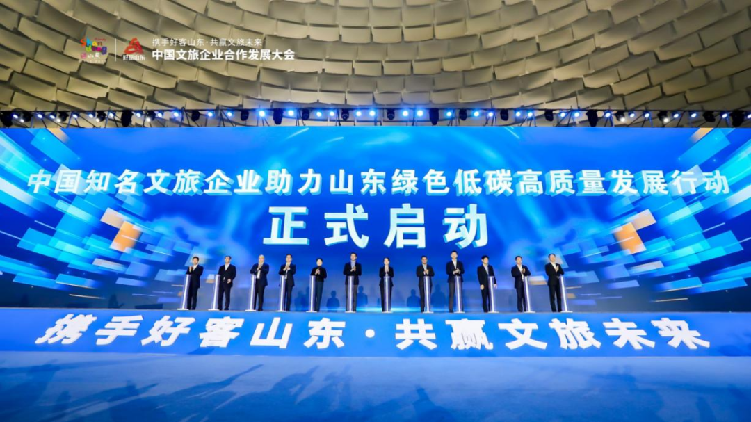 此次大會(huì)還開(kāi)啟了中國(guó)知名文旅企業(yè)助力山東綠色低碳高質(zhì)量發(fā)展行動(dòng)。丁藝代表山東文旅集團(tuán)與中國(guó)旅游集團(tuán)等12家文旅企業(yè)負(fù)責(zé)人共同上臺(tái)開(kāi)啟助力行動(dòng)儀式。