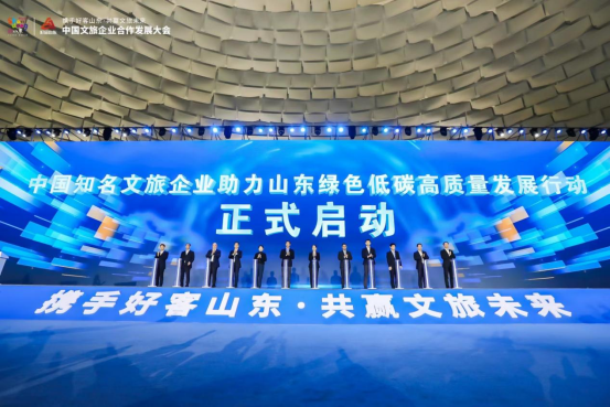 開幕式上,國內(nèi)重點(diǎn)文旅企業(yè)分享了投資山東經(jīng)驗,知名文旅企業(yè)發(fā)布在魯合作需求,視頻發(fā)布山東重點(diǎn)文旅招商項目,為山東20家領(lǐng)航型文旅企業(yè)、山東十佳民營文旅企業(yè)領(lǐng)軍人物授牌。山東文旅集團(tuán)入選首批20家領(lǐng)航型文旅企業(yè),并在省文旅廳等部門指導(dǎo)下,發(fā)起組建山東文旅企業(yè)聯(lián)盟,涵蓋全省旅游景區(qū)、酒店、文旅集團(tuán)、文化企業(yè)等近100家企業(yè)。另外,山東文旅集團(tuán)與國內(nèi)其他11家知名文旅企業(yè)共同啟動中國知名文旅企業(yè)助力山東綠色低碳高質(zhì)量發(fā)展行動。