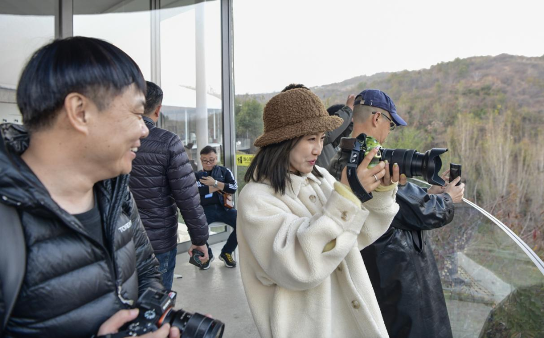初冬的九女峰在靜謐中平添了一分清麗,朦朧薄霧間云月相伴的勝景令人流連忘返。伴隨著講解員的介紹,網(wǎng)絡(luò)名人們沿著山路拾級而上,不時駐足停留,掏出手機(jī)拍照打卡,記錄九女峰的醉人美景。