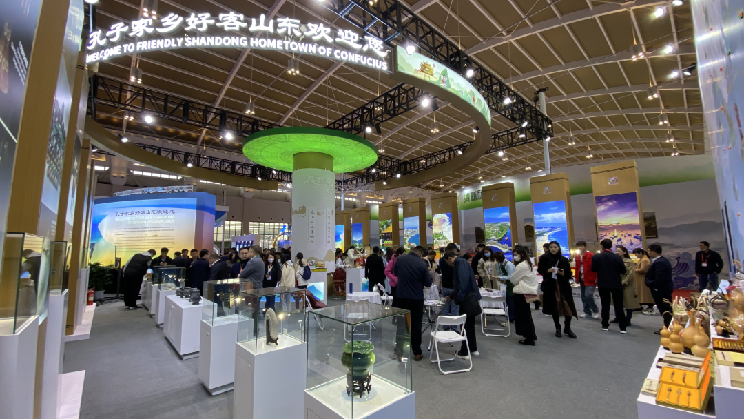 以“孔子家鄉(xiāng) 好客山東歡迎您”為主題的山東展區(qū)精彩亮相,山東省各市文化和旅游局及文旅企業(yè)50多家參展單位超過800個(gè)展品驚艷展出。展區(qū)從“歷史文化、度假景區(qū)、旅游資源、民俗風(fēng)情、齊魯美食”五大方面劃分為旅游資源展示區(qū)、非遺民俗展示區(qū)、特色博物館展示區(qū)等多個(gè)主題區(qū)域,全面展示山東省融合發(fā)展新風(fēng)貌。眾多齊魯元素交相輝映,向來自世界各地的游客展現(xiàn)一幅好客之情、好品之盛的山東畫卷,受到廣泛關(guān)注。文化和旅游部黨組書記孫業(yè)禮、世界旅游聯(lián)盟主席張旭蒞臨山東展區(qū)參觀指導(dǎo)。