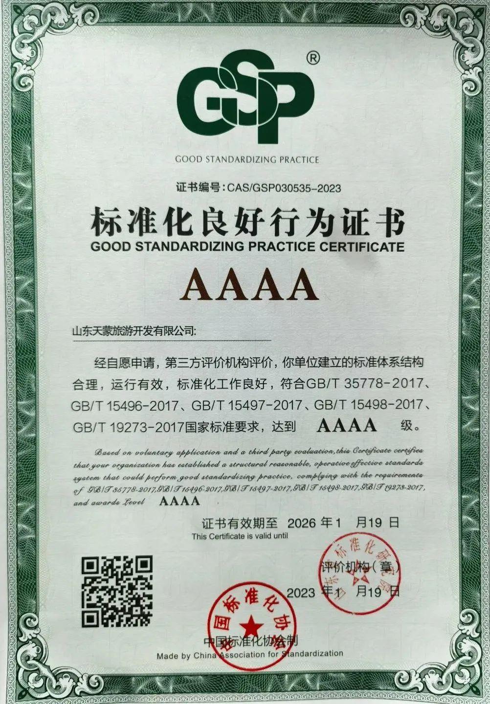 一直以來,天蒙景區(qū)從戰(zhàn)略高度將“標(biāo)準(zhǔn)化引領(lǐng)服務(wù)質(zhì)量提升”的理念貫穿于景區(qū)發(fā)展的全過程。景區(qū)在2019年通過省級服務(wù)標(biāo)準(zhǔn)化試點項目驗收的基礎(chǔ)上,于2021年度成功立項了國家級服務(wù)業(yè)標(biāo)準(zhǔn)化試點項目,又在2022年3月啟動了標(biāo)準(zhǔn)化良好行為企業(yè)創(chuàng)建工作。2023年獲評4A級“標(biāo)準(zhǔn)化良好行為企業(yè)”,成為臨沂市首家榮獲此殊榮的旅游景區(qū)。