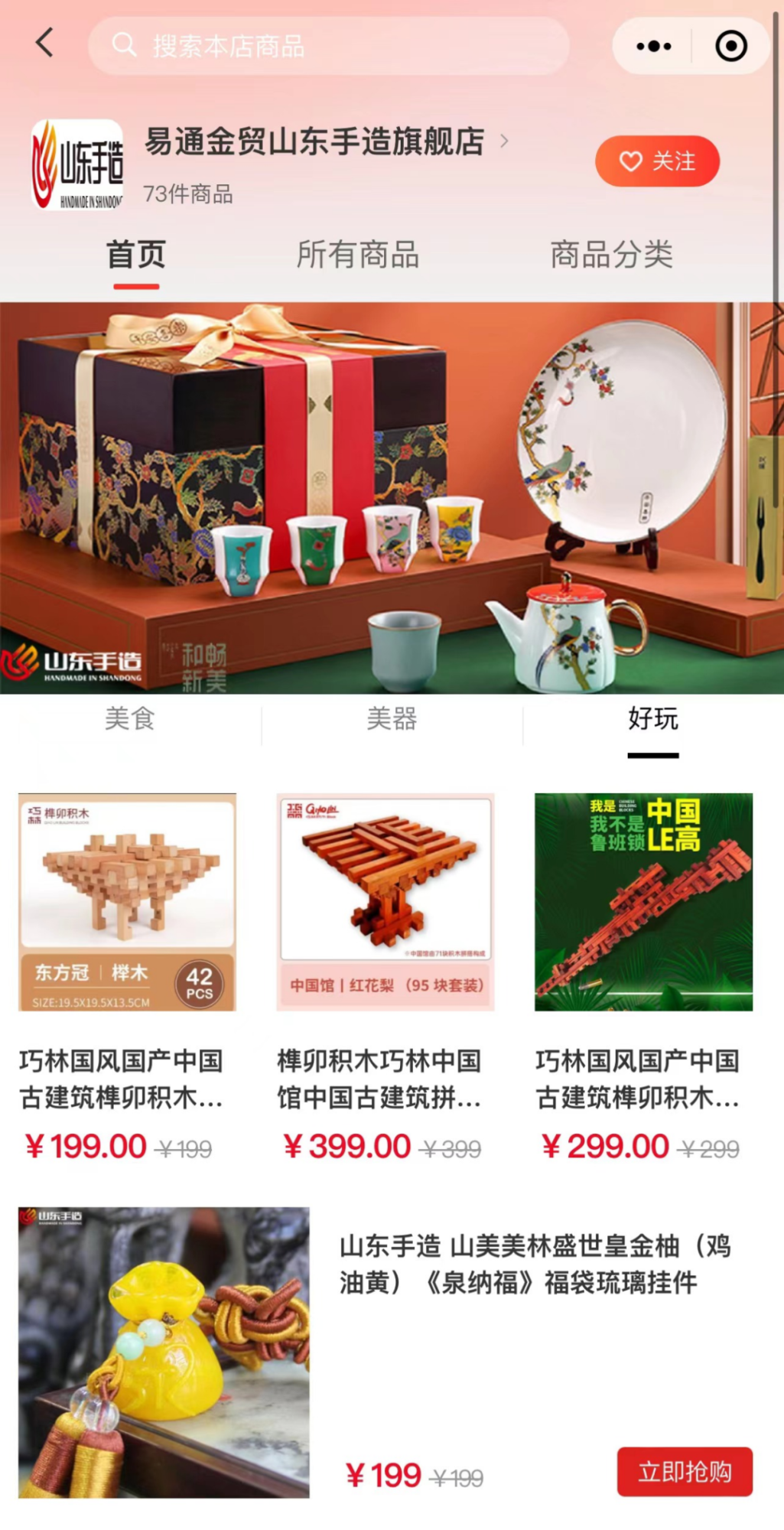 去年7月份山東文旅景區(qū)投資集團(tuán)注冊(cè)成立山東手造投資運(yùn)營(yíng)集團(tuán),今年手造集團(tuán)積極推進(jìn)“山東手造”品牌的市場(chǎng)化運(yùn)營(yíng),建立了全域營(yíng)銷(xiāo)網(wǎng)絡(luò)。建設(shè)“山東手造”山東一卡通線(xiàn)上商城,各種手造精品琳瑯滿(mǎn)目;入駐銀座云逛街,讓“山東手造”走進(jìn)市民群眾的日常生活;在商圈、社區(qū)、文創(chuàng)街區(qū)等舉辦“豐物手造市集”,打造城市文化生活場(chǎng)域。此外手造集團(tuán)還積極探索抖音直播帶貨等新形式新辦法,讓“山東手造”日漸成為富裕群眾生活、展示山東形象的閃亮新名片。