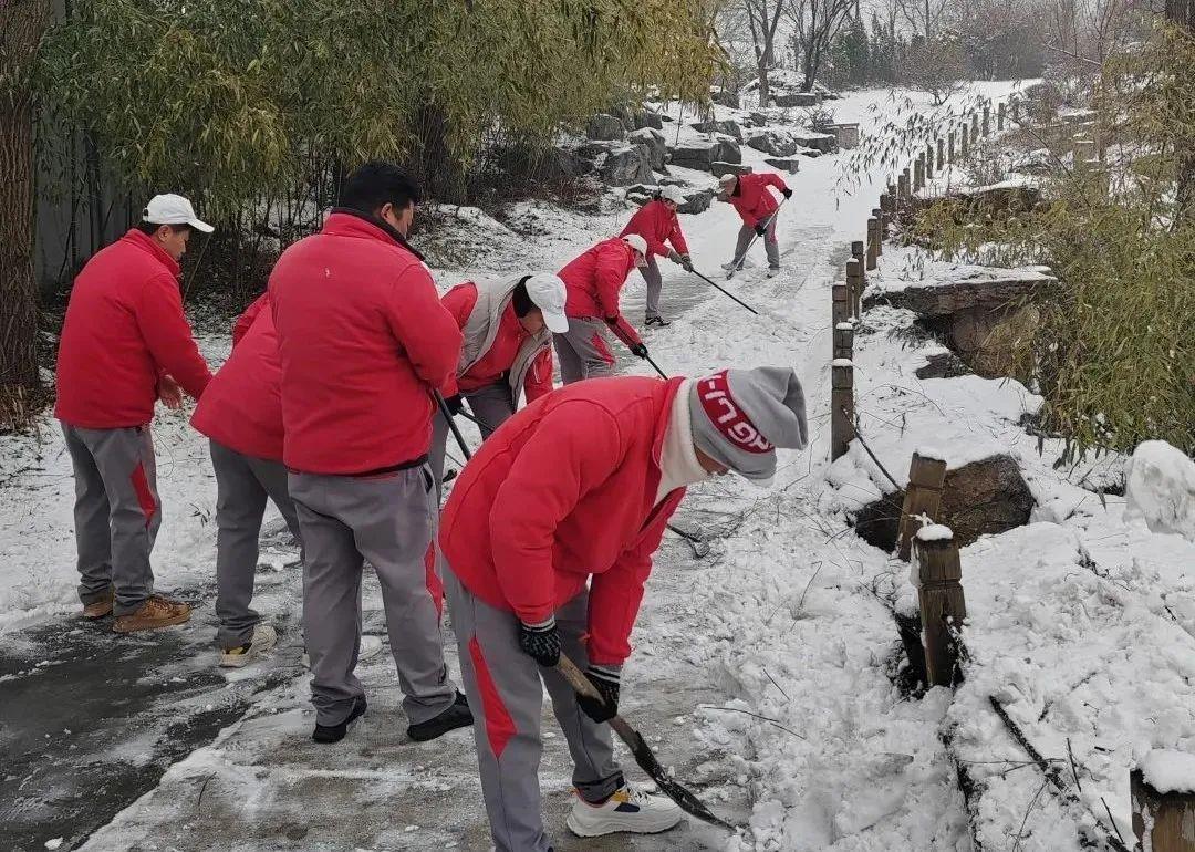 活動中,黨員干部帶頭沖鋒在前,大家推著雪鏟、揚(yáng)著鐵鍬、揮舞著掃把,不懼嚴(yán)寒、分工明確、干勁十足,進(jìn)行了一場酣暢淋漓的浴“雪”奮戰(zhàn)!在大家共同的努力下,公司全域主干道、人行區(qū)、停車場、球道積雪被及時清理,為一線經(jīng)營掃除障礙,為出入安全保駕護(hù)航;用心用情為業(yè)主以及員工宿舍房前屋后掃除積雪,用實(shí)際行動闡述“讓員工和客戶因我們的存在而自豪”的企業(yè)文化。