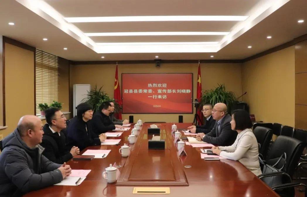 2月4日,冠縣縣委常委、宣傳部部長(zhǎng)劉曉靜一行到訪山東文旅集團(tuán),集團(tuán)黨委委員、副總經(jīng)理孫超會(huì)見。