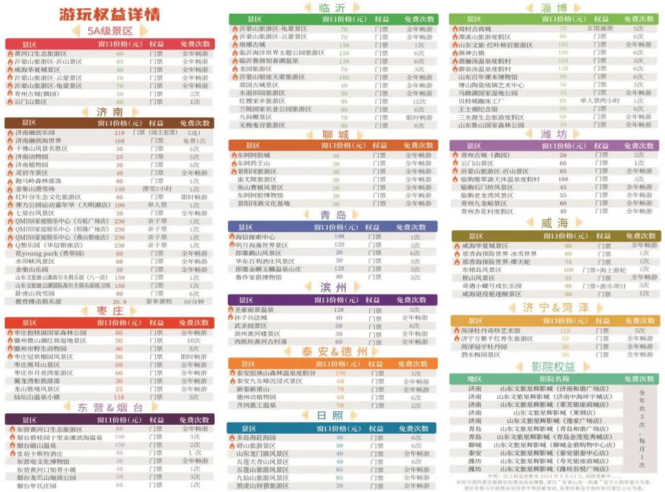 “好客山東一碼通”旅游年卡是由山東文旅集團(tuán)旗下文旅云公司主導(dǎo)建設(shè)運(yùn)營(yíng)的惠民文旅年卡產(chǎn)品,此次推出的2.0升級(jí)版,在售價(jià)不變的基礎(chǔ)上,新增近40家優(yōu)質(zhì)景區(qū)及生活消費(fèi)場(chǎng)景,景區(qū)總數(shù)突破至120家,產(chǎn)品覆蓋山東全省7家5A級(jí)景區(qū)、50余家4A級(jí)景區(qū),更有高爾夫球場(chǎng)、溫泉度假村、滑雪場(chǎng)、親子樂園、豪華影院等眾多高端休閑娛樂資源,總價(jià)值超萬元,全方位滿足游客多元化、高品質(zhì)的出游需求。
