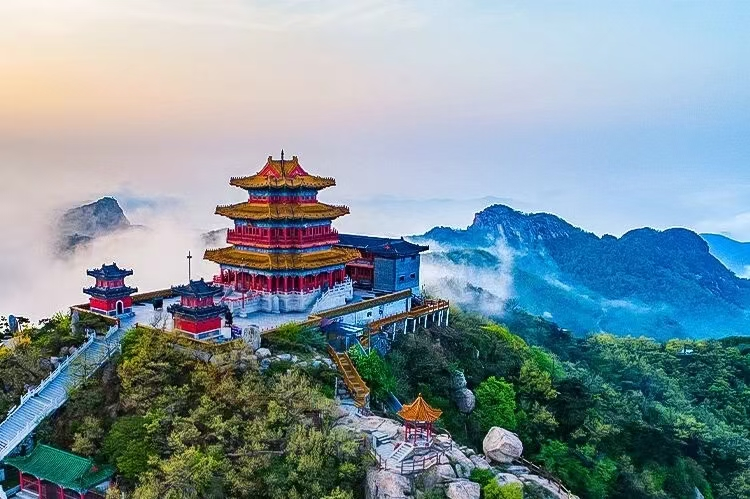 沂山風(fēng)景區(qū)是中國五大鎮(zhèn)山之首,被譽為“魯中仙山”。景區(qū)內(nèi)的百丈崖瀑布是江北第一高瀑布,夏季涼爽如秋,冬季形成壯觀的冰瀑,是熱播劇《國色芳華》的取景地。東鎮(zhèn)廟廟內(nèi)碑林為中國三大碑林之一,黃帝、漢武帝等16位帝王曾登封沂山,李白、蘇軾等文人留下大量詩篇碑刻,文化積淀深厚。
