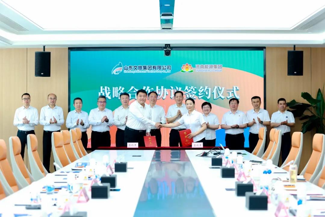 4月30日,山東文旅集團(tuán)有限公司與濟(jì)南能源集團(tuán)有限公司戰(zhàn)略合作協(xié)議簽約儀式在濟(jì)南舉行。濟(jì)南能源集團(tuán)黨委書(shū)記、董事長(zhǎng)潘世英,山東文旅集團(tuán)黨委書(shū)記、董事長(zhǎng)丁藝出席并講話。